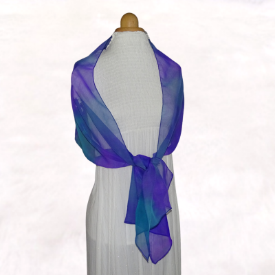 Introducing our stunning Purple & Teal Chiffon Scarf, the perfect accessory to elevate any outfit! This beautiful scarf features a vibrant blend of purple and teal hues, creating a striking visual that is sure to turn heads. Made from high-quality chiffon, it is lightweight and airy, making it ideal for year-round wear. Whether you're dressing up for a special occasion or adding a pop of colour to your everyday look, this scarf is versatile enough to suit any style.